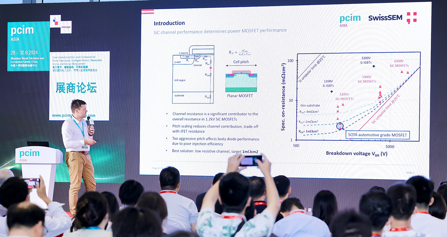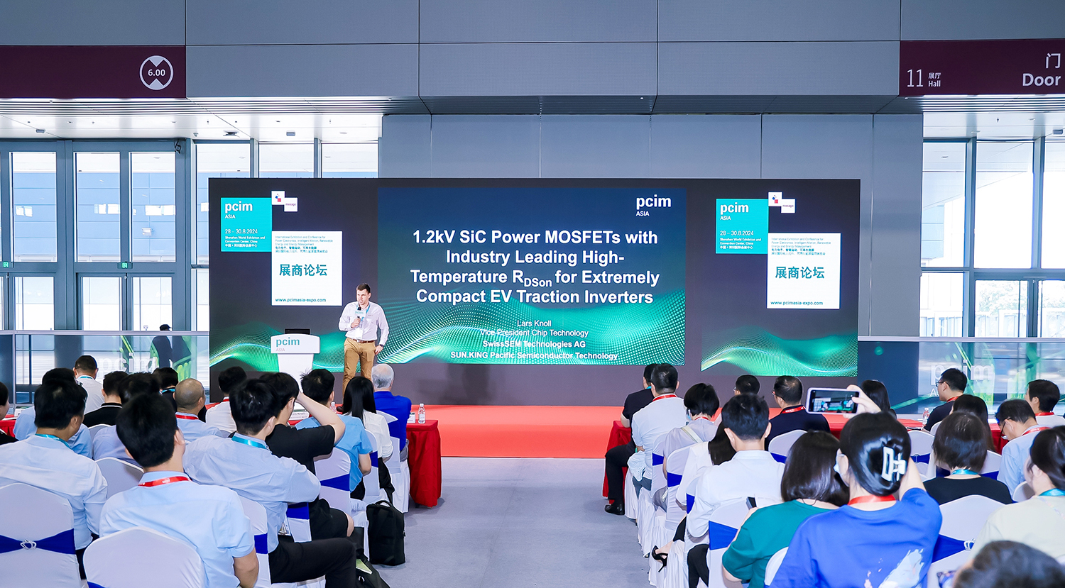 8月28日举行的PCIM Asia 2024展上,ac米兰官网所属子公司SwissSEM正式发布1200V/13mΩ SiC MOSFET芯片,并由芯片专家做现场报告《高温导通电阻行业领先的1.2kV SiC MOSFET,适用于电动汽车紧凑型逆变器》。